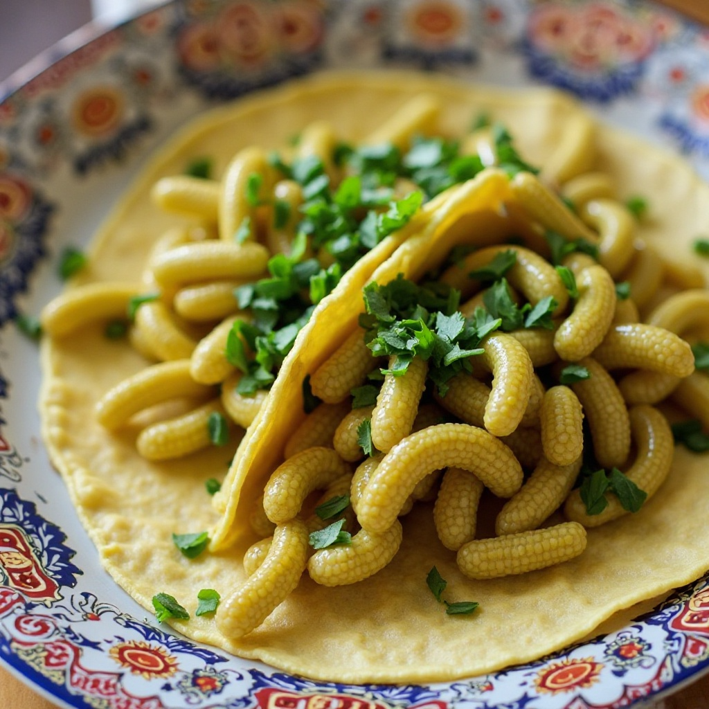 Los escamoles son gusanos comestibles originarios de la región de Tlacotepec de Nicolás Ruíz, en el estado de Tlaxcala, México, aunque su preparación y apreciación culinaria han trascendido fronteras. En Huamantla, esta región histórica de Tlaxcala, los escamoles se preparan con un toque distintivo, resaltando su sabor único y la rica tradición gastronómica de la zona. Este plato es ideal para quienes buscan una experiencia culinaria auténtica y aventurera.