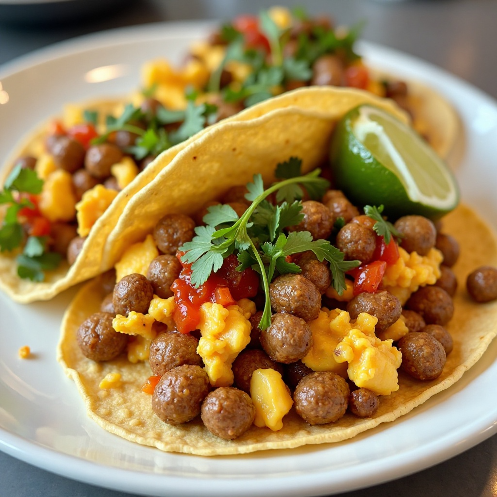 Receta de Tacos de Huevo a la Mexicana con Chorizo para el Desayuno en Austin, Texas