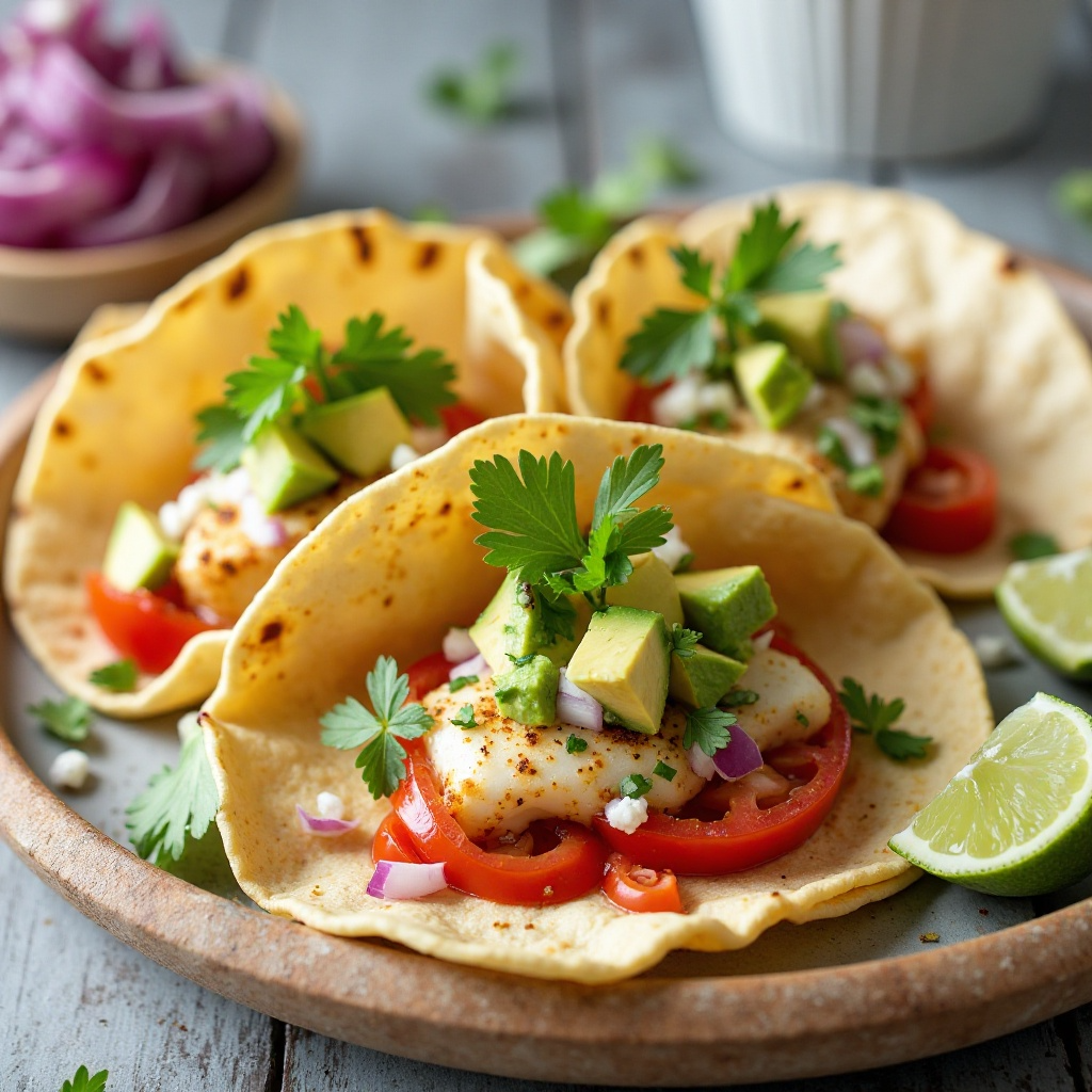 Este plato es bajo en calorías y rico en proteínas y grasas saludables. El pescado es una fuente excelente de omega-3, beneficios para la salud cardiovascular. Las tortillas de maíz aportan fibra, y el aguacate contribuye con grasas saludables. Para aquellos que prefieren opciones sin gluten, asegúrate de utilizar tortillas sin maíz.