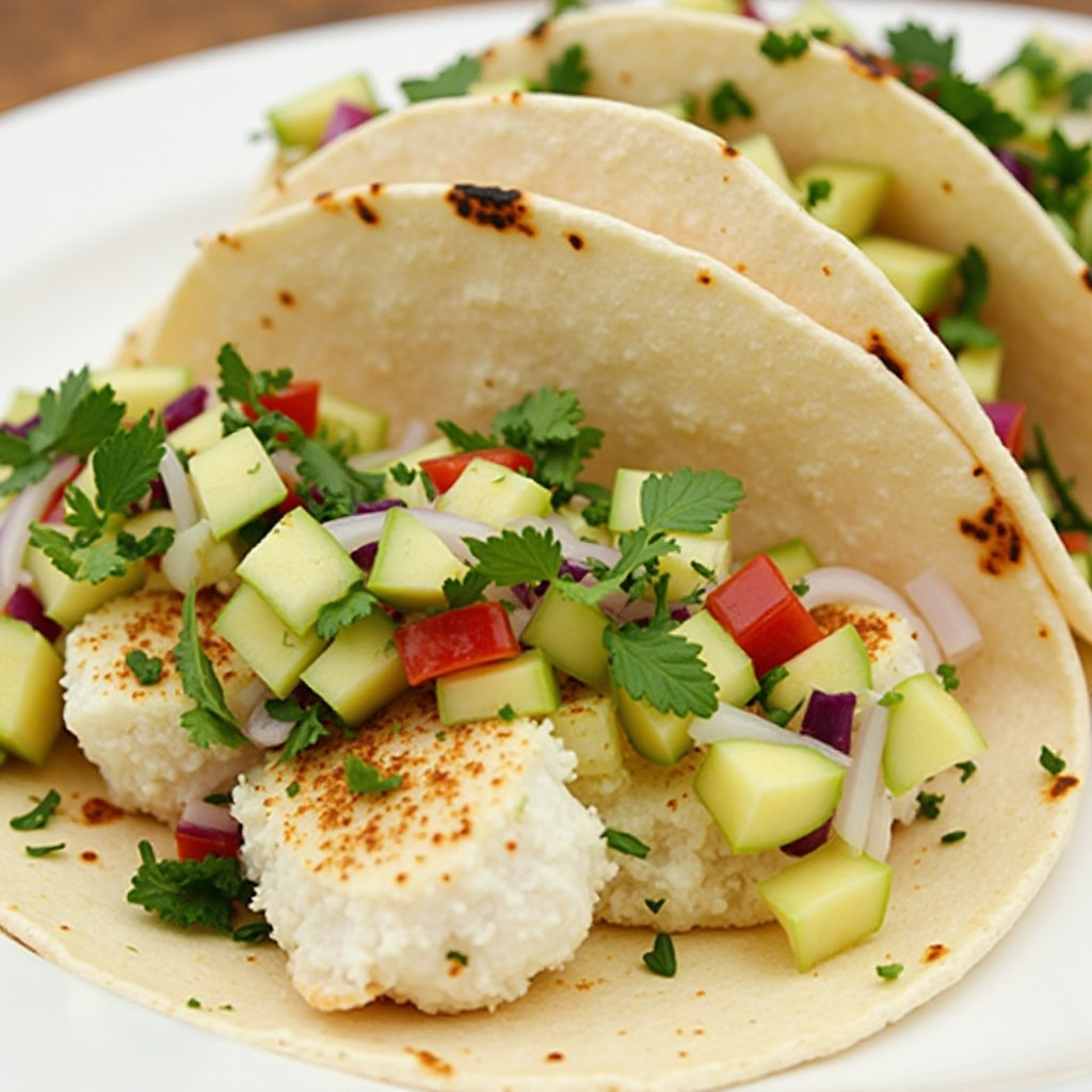 Receta de Tacos de Pescado con Jícama y Salsas Frescas