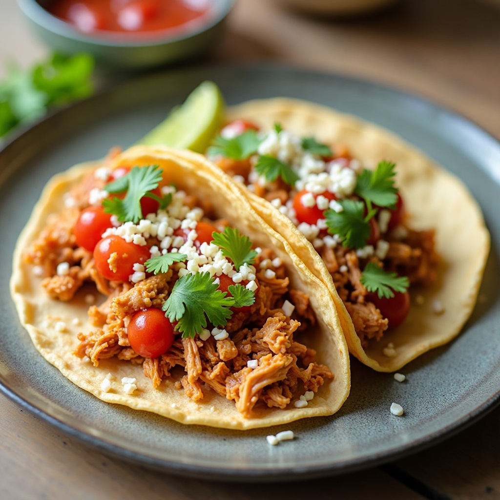 - Sirve los tacos de pollo con una mezcla fresca de cilantro, salsa picante si lo deseas, y limón exprimido.