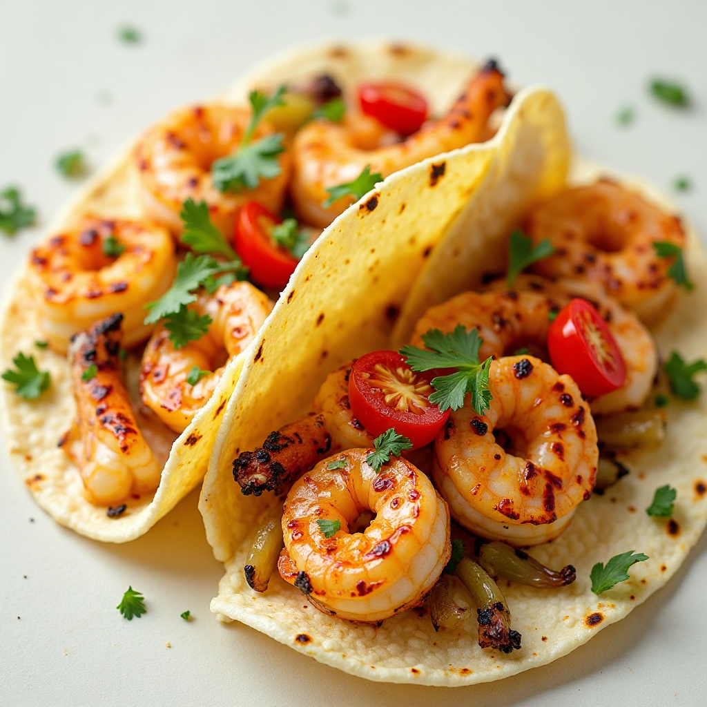 - Sirve inmediatamente los tacos, disfrutando de la fusión de sabores que el tequila aporta a los camarones frescos.