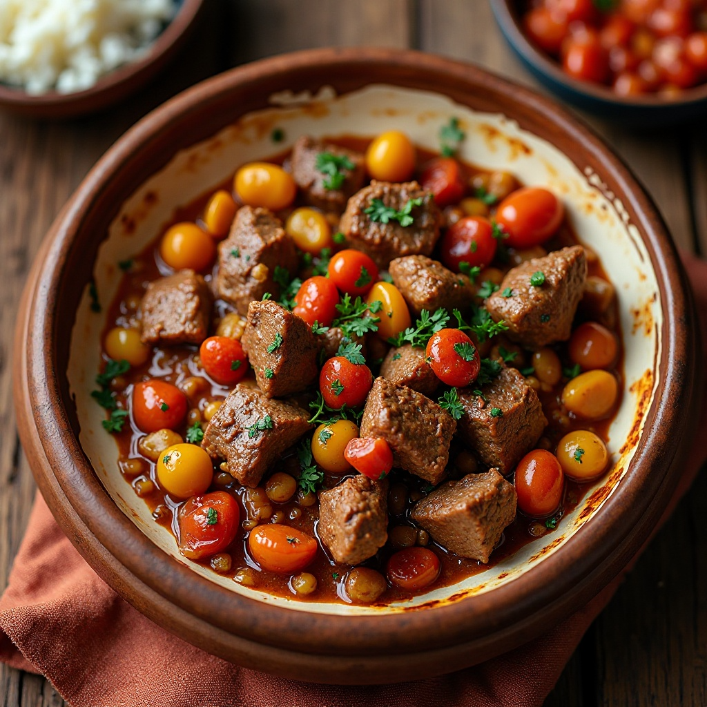 El tagine es un plato emblemático de la cocina marroqui y se ha adaptado en muchas formas en Mauritania, incluyendo en la región de Sélibaby. Este tagine combina el sabor terroso del cordero con la dulzura natural de los dátiles y las pasas, creando un equilibrio perfecto de sabores que es simplemente irresistible.