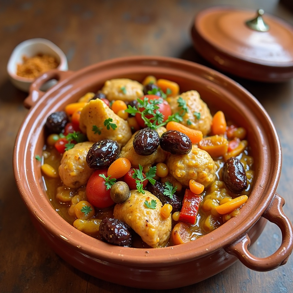 Receta de Tagine de Pollo con Dátiles y Pasas para Jebel Ali, Emiratos Árabes Unidos