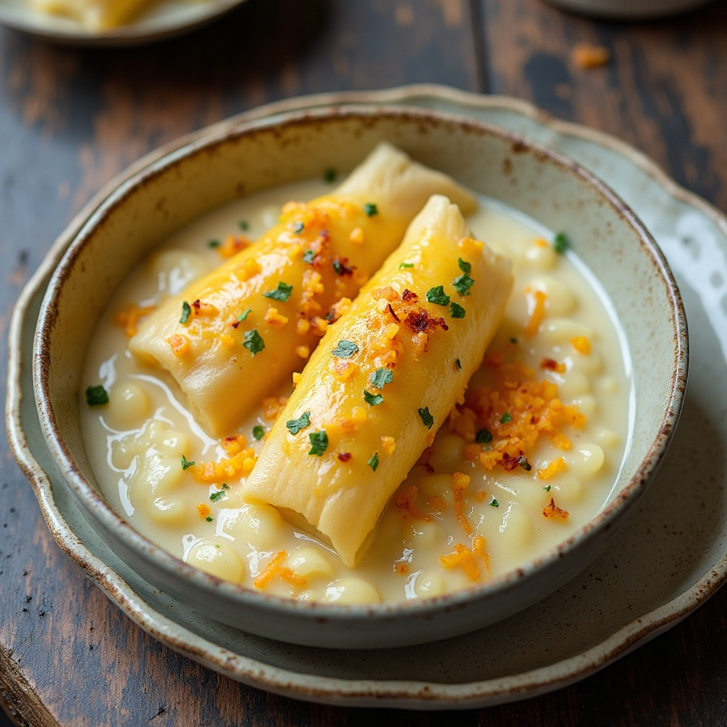- Calienta una olla grande con un poco de aceite de oliva. Añade los tamales deshuesados y cocínalos a fuego medio-bajo, cubiertos con la mitad de la leche, hasta que estén suaves (alrededor de 15-20 minutos). Revuelve ocasionalmente para asegurar una cocción uniforme.