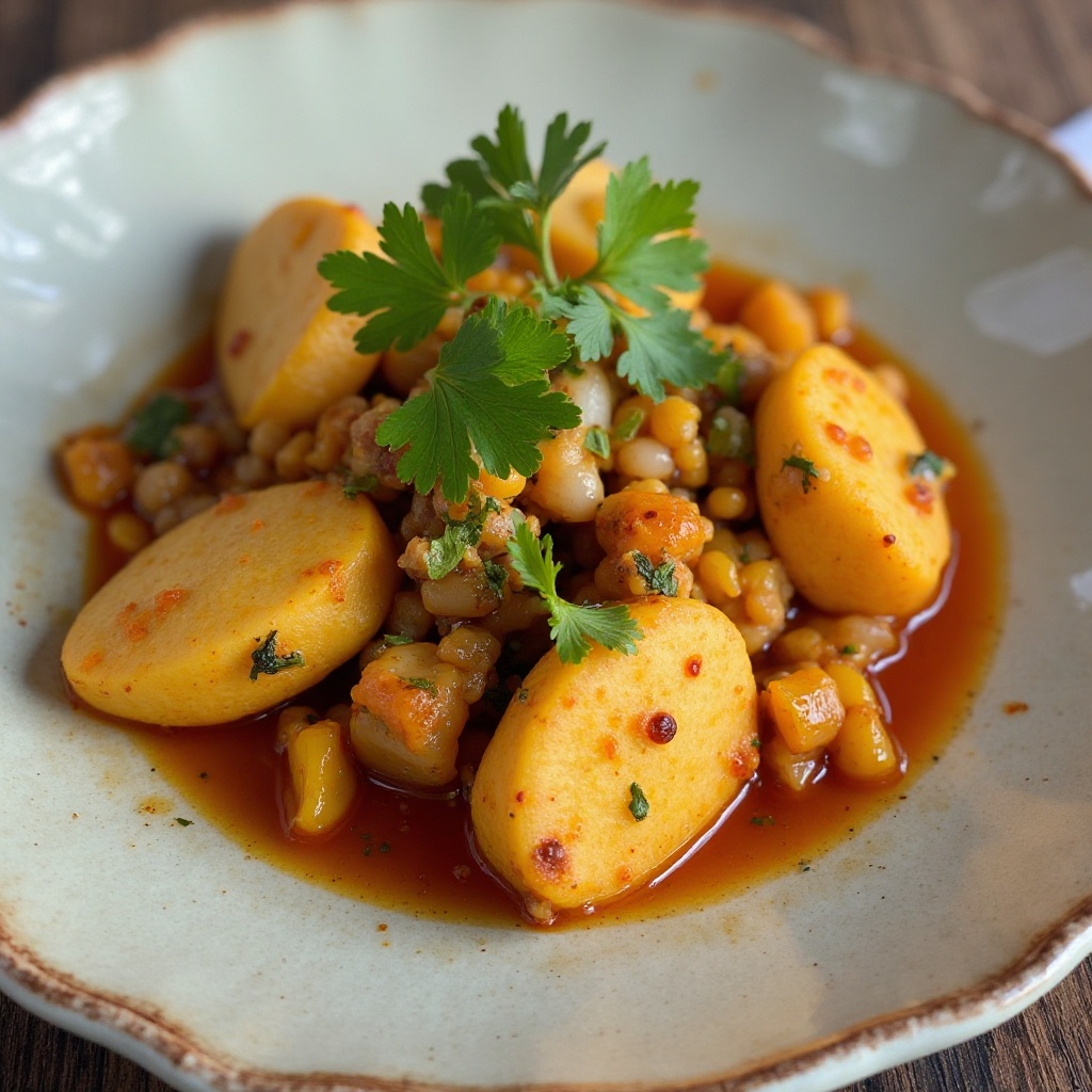 El taro es un ingrediente fundamental en muchas cocinas del Pacífico Sur, y su preparación en Palaos refleja la importancia de este tubérculo en las tradiciones culinarias locales. En Meyungs, el uso de aceite de coco, típico de la región, realza el sabor y textura del taro, haciendo de esta receta una expresión auténtica de la gastronomía de Palaos.