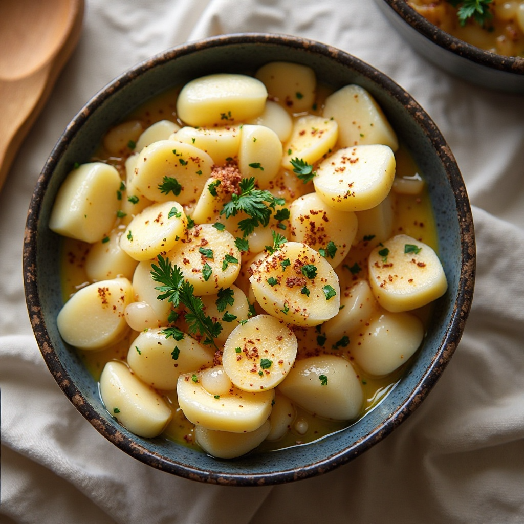 El taro es un pilar en muchas dietas del Pacífico, incluido Micronesia. En la cultura Tomil, el taro no solo se come sino que también se considera un símbolo de abundancia y prosperidad. A menudo se asocia con celebraciones familiares y ocasiones especiales, donde su preparación y consumo son rituales que unen a las generaciones. Este plato refleja el respeto por los ingredientes locales y la habilidad para transformar simples tubérculos en una comida deliciosa y comunitaria.
