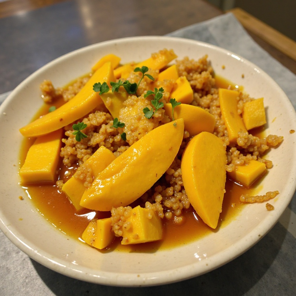 El taro es una fuente rica de almidón resistente, que puede ser beneficioso para la salud al promover la saciedad y mejorar la digestión. El mango, por otro lado, ofrece vitaminas A y C, contribuyendo a mantener una piel saludable y un sistema inmunológico fuerte. Si deseas, puedes ajustar el nivel de dulzor agregando o reduciendo la cantidad de azúcar moreno.