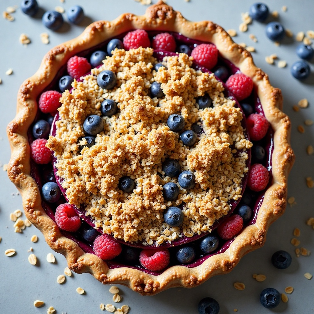 Receta de Tarta de Arándanos y Frambuesas con Crumble de Avena