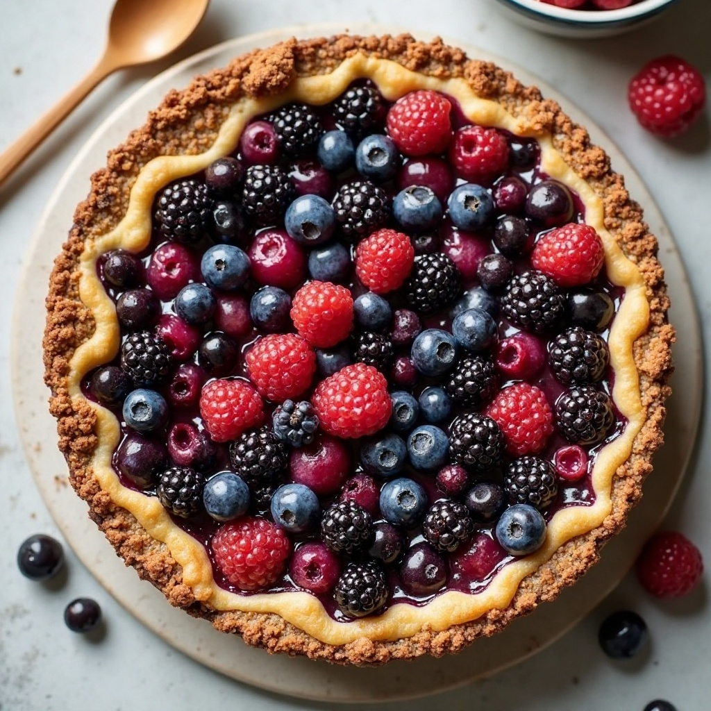 Este postre es bajo en calorías y alto en antioxidantes gracias a las bayas silvestres. El uso de harina integral y avena incrementa el contenido de fibra, favoreciendo la digestión. La elección del azúcar moreno y miel por sobre azúcares refinados le proporciona un toque dulce sin comprometer la salud.