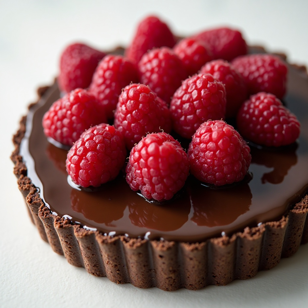 - Una vez fría, decora la tarta con rodajas de frambuesa fresca y agrega un toque de edulcorante y esencia de chocolate si se desea.