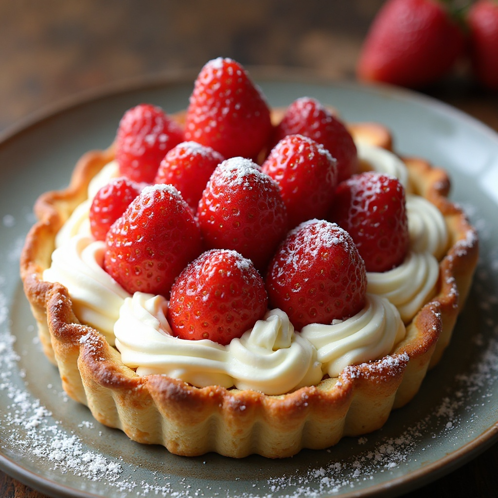 8. Decoración: Espolvorea azúcar sobre la tarta fresca y sirve con una generosa porción de crema chantilly.
