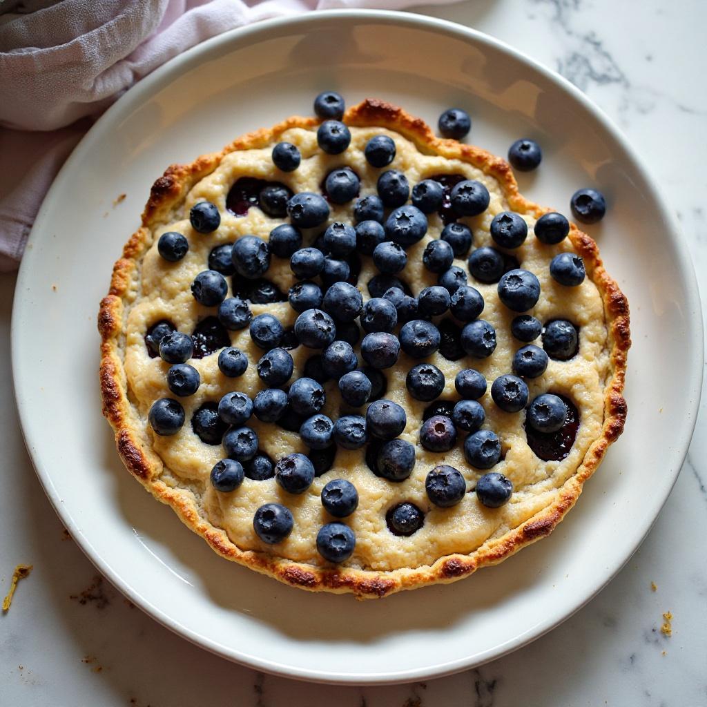 5. Hornea la tarta durante 20-25 minutos o hasta que los bordes estén dorados. Deja enfriar antes de servir para disfrutar del contraste entre la textura crujiente de la masa y la jugosidad de las blueberries.