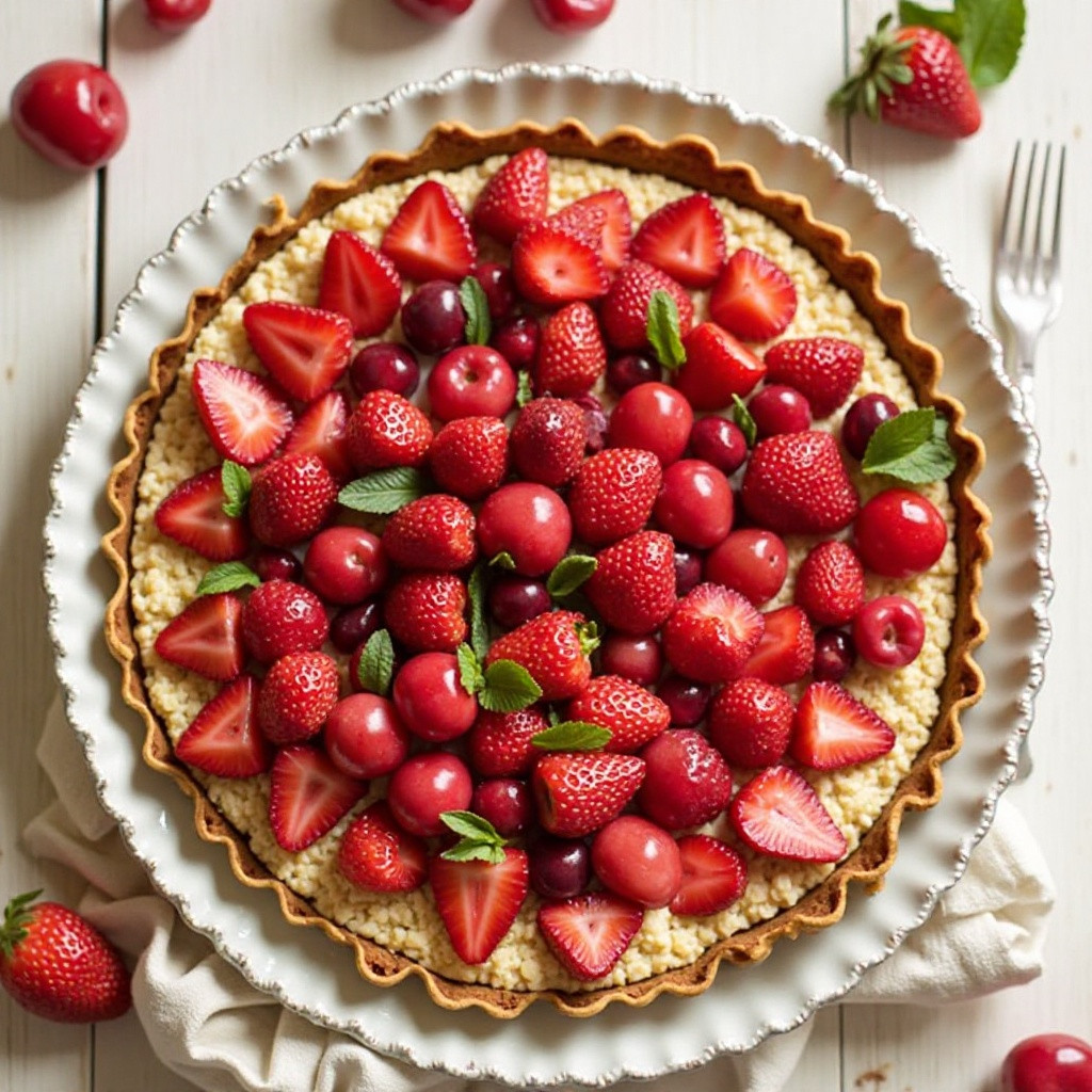 Michigan es famoso por sus frutales abundantes, especialmente las cherries, que son celebradas anualmente con festivales y eventos dedicados. Al incorporar estas frutas en la tarta, se rinde un homenaje a la rica tradición agrícola del estado, mientras que el postre mismo es perfectamente adaptable para cualquier región que desee disfrutar de un plato fresco y vibrante como este. Esta receta es ideal para compartir en Wyoming, donde la comunidad valora tanto las tradiciones culinarias locales como las influencias exóticas.