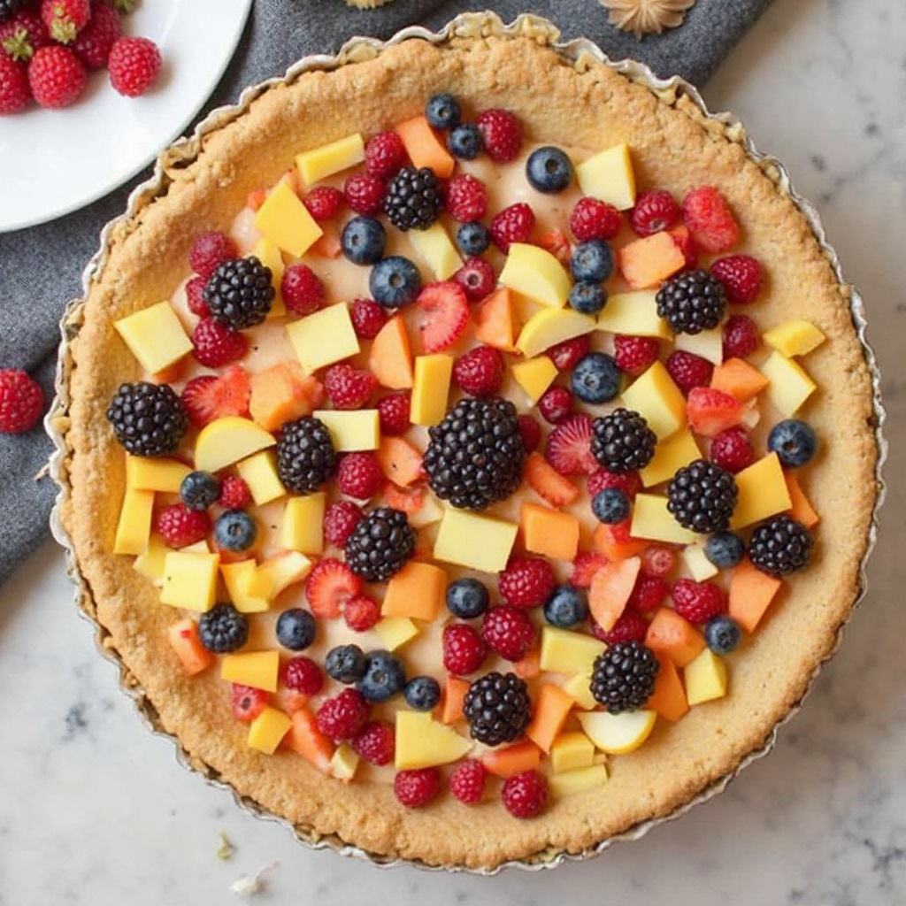 La Tarta de Frutas Frescas es un postre delicioso y refrescante, especialmente popular en pequeñas ciudades de Estados Unidos como Lambertville, Nueva Jersey. Esta receta utiliza frutas frescas locales, lo que la hace única para cualquier época del año. Es perfecta para disfrutar después de un almuerzo o cena ligera, o simplemente como un tentempié dulce.