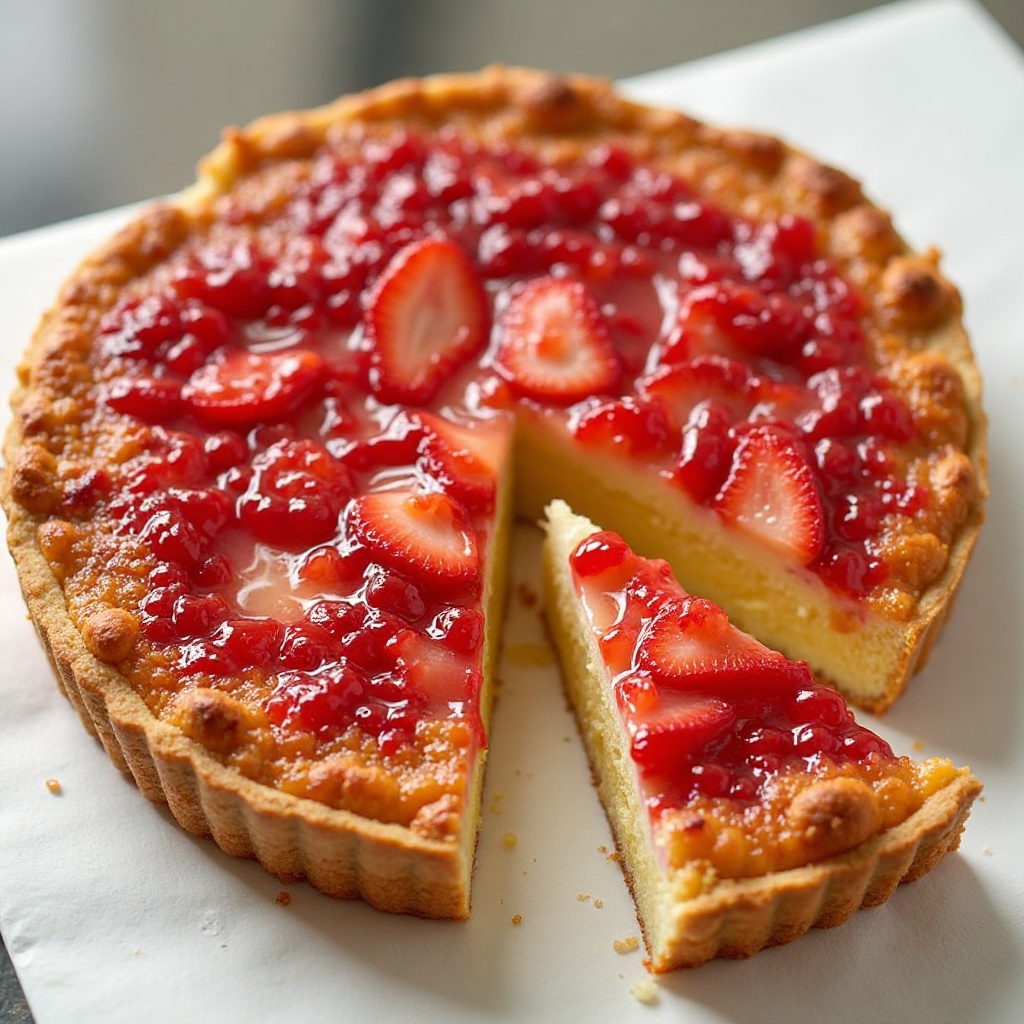Esta tarta ofrece una opción dulce con un toque ácido gracias a la mermelada de fresa y el jugo de limón. El azúcar moreno utilizado, en comparación con el blanco, contiene un poco más de nutrientes como el calcio y la fibra, lo que la hace una elección ligeramente más saludable para quienes buscan disfrutar de postres sin descuidar su dieta.