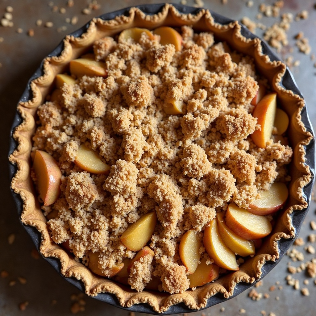 7. Espolvorea generosamente el crumble sobre la superficie de las manzanas.