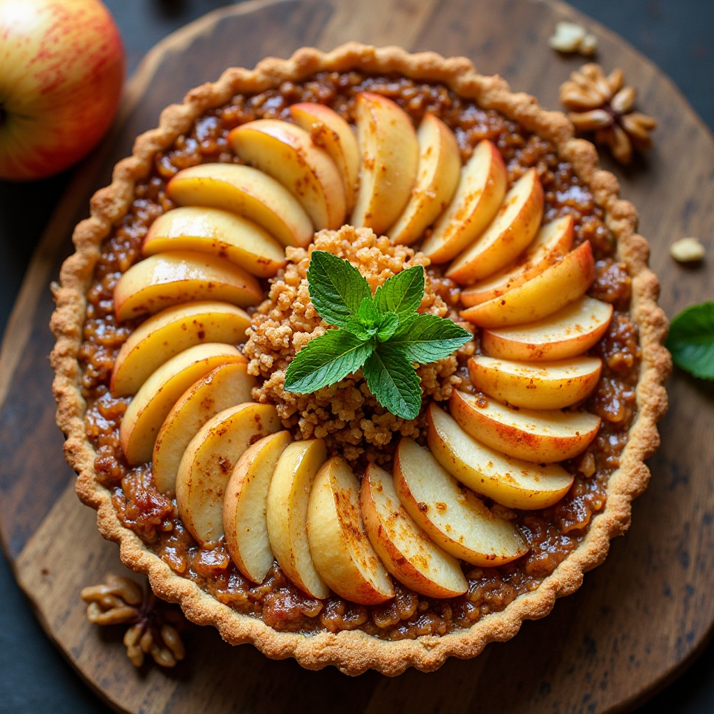 Esta tarta de manzana y nueces ofrece un buen equilibrio nutricional. Las manzanas son ricas en antioxidantes y fibra, mientras que las nueces aportan grasas saludables. Asegúrate de usar mantequilla y miel de fuentes locales para apoyar la economía regional y disfrutar de un producto más fresco. Si prefieres una versión sin azúcar añadido, considera reducir el azúcar moreno.