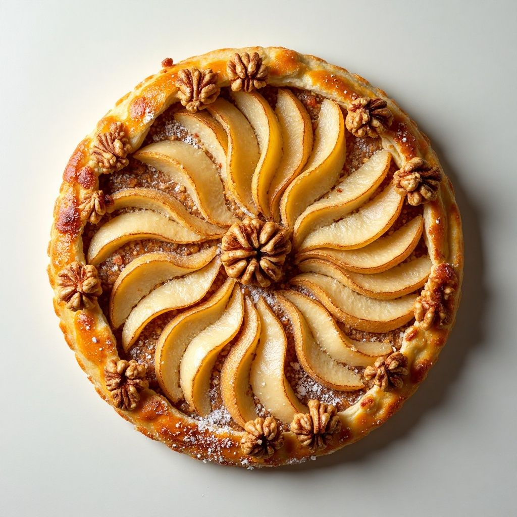 Esta tarta, aunque dulce, aprovecha los ingredientes frescos de la región, como las peras, que son ricas en antioxidantes. La mantequilla y el azúcar en la receta son parte del sabor característico, pero se puede ajustar la cantidad para reducir la ingesta de calorías si se desea. Los nueces aportan un buen contenido de fibra y grasas saludables.