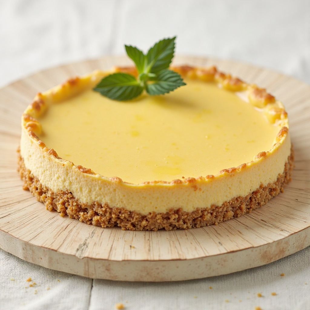 - Vierte la mezcla sobre la base precocida y hornea a 170°C (340°F) durante 30-35 minutos, o hasta que el centro esté firme pero aún un poco blando al tocarlo.