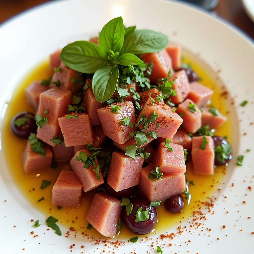 Mónaco es conocida por su rica historia y alta cocina, fusionando sabores del Mediterráneo con influencias internacionales. Este tartare de atún Barbagiuan no solo resalta la exquisitez culinaria local, sino que también refleja la pasión de Mónaco por los ingredientes de calidad y técnicas de preparación refinadas.