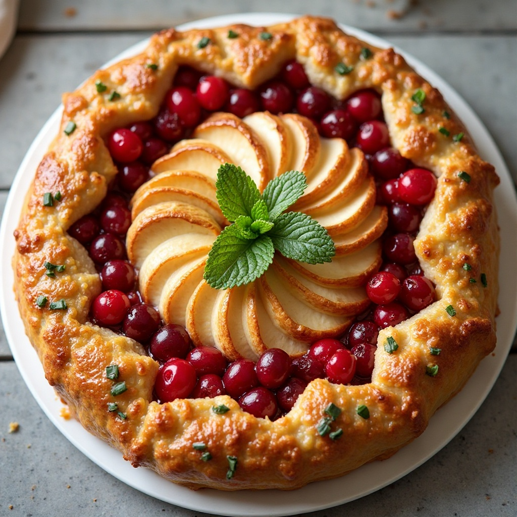 Esta tarta combina los beneficios nutricionales de las frutas frescas con la textura única del Kouign-amann. Las manzanas y arándanos son ricas en antioxidantes, mientras que el Kouign-amann aporta energía gracias a sus carbohidratos complejos. Para disfrutarla sin sobrepasar los límites calóricos, considera servirla como un postre ocasional y acompañarla con una porción moderada de frutas frescas adicionales.