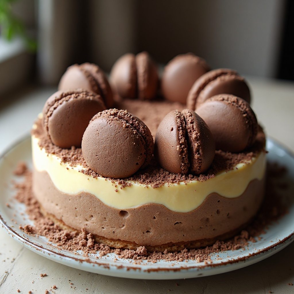La tarte aux macarons es una tarta dulce y sofisticada, originaria de Francia, que ha ganado popularidad mundialmente por su delicadeza y complejidad en sabor. Esta receta, ideal para ocasiones especiales o para impresionar a invitados, utiliza macarons clásicos franceses como su base, con una crema pastelera suave y un toque de chocolate oscuro.