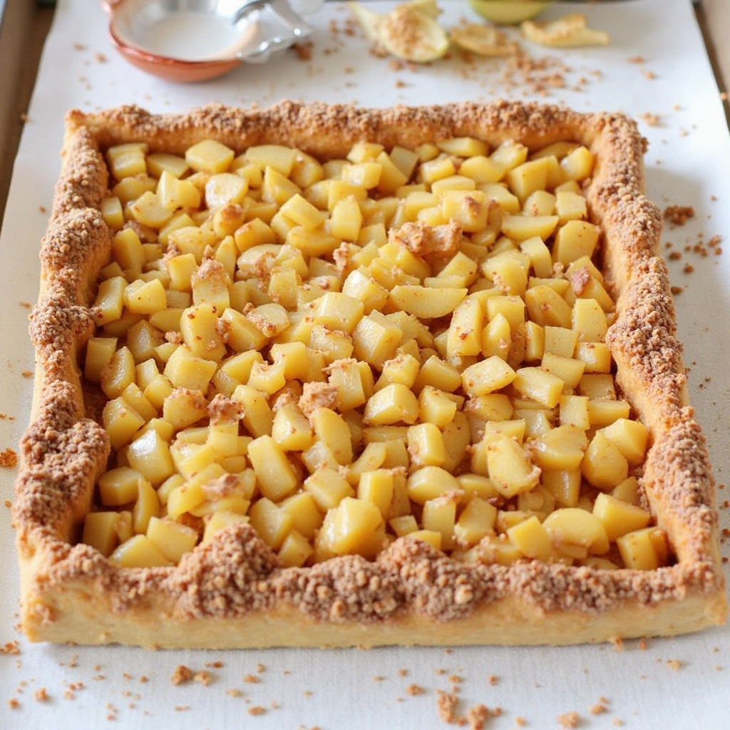 - Espolvorea la masa para tartas por encima de la mezcla de manzana y cidra, creando un borde estético si así lo deseas.
