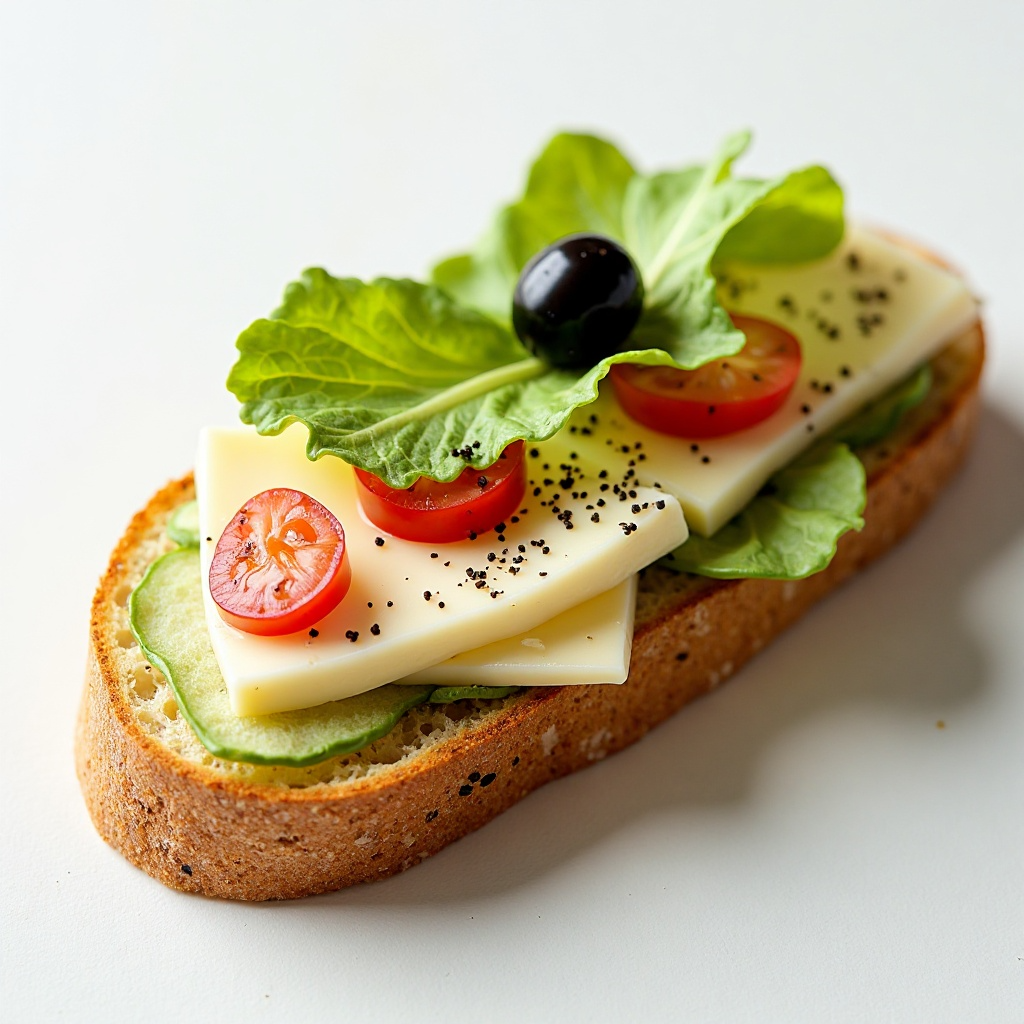 Esta tartine es baja en calorías, gracias a su enfoque en ingredientes frescos y naturales. El Fromage de Saint-Marcellin aporta proteína y calcio, mientras que la lechuga proporciona fibra dietética. Recuerda controlar las cantidades de aceitunas para mantener un equilibrio nutricional.