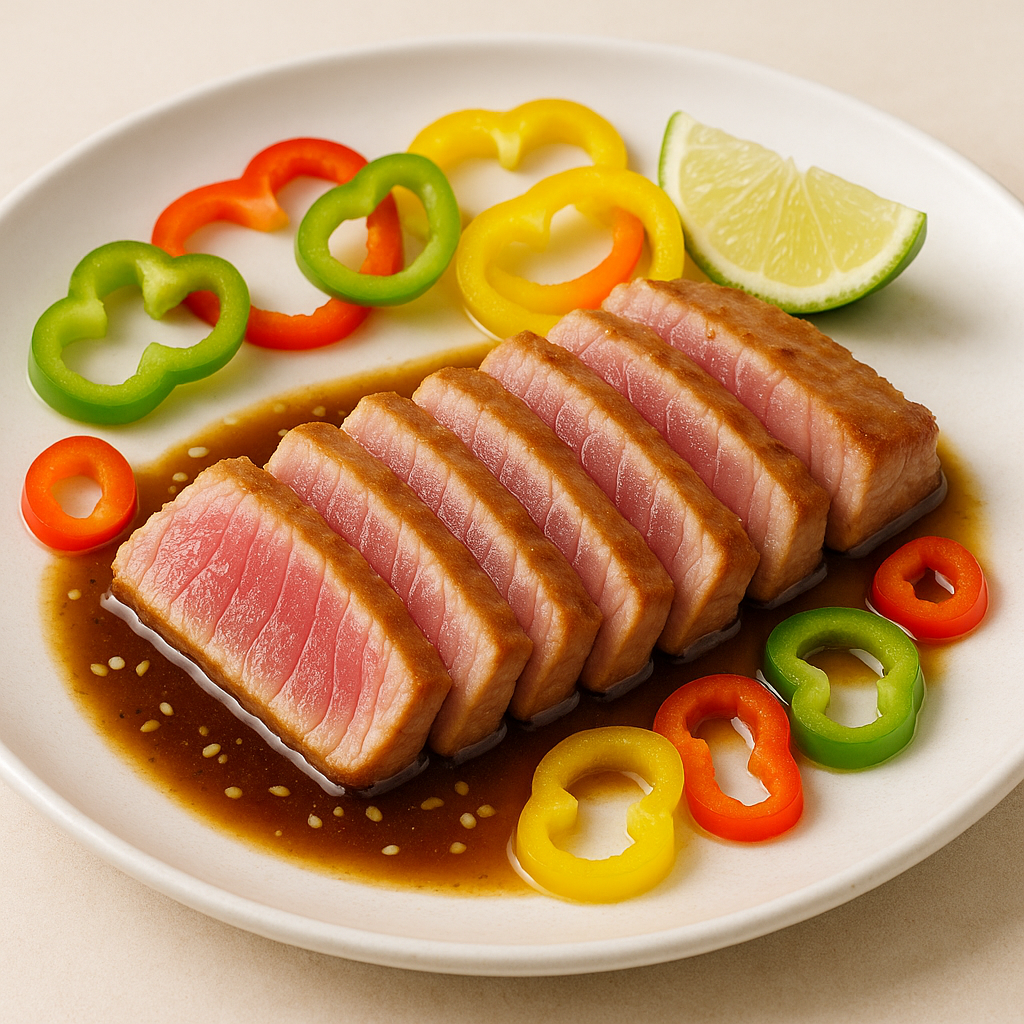 El tataki es un plato emblemático del sushi y la cocina japonesa, que se ha ganado un lugar en las cocinas internacionales. En Sotogrande, y en España más ampliamente, la inclusión de productos locales como el atún rojo de almadraba en platos tradicionales de fuera de su región, refleja una fusión gastronómica que celebra la diversidad culinaria del mundo. Este tataki es un ejemplo perfecto de cómo ingredientes de alta calidad pueden transformarse en una obra maestra culinaria que resuena con el espíritu refinado de Sotogrande.