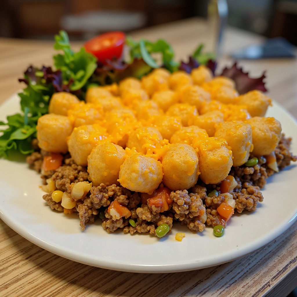 El Tater Tot Casserole es una comida típica de las áreas rurales del norte de Minnesota, como Burnsville. Fue popularizado durante la Segunda Guerra Mundial debido a su preparación fácil y económica. Esta receta muestra la influencia de ingredientes disponibles localmente y la creatividad culinaria para crear platos satisfactorios y fáciles de preparar, reflejando la cultura de confort y comunidad en la región.