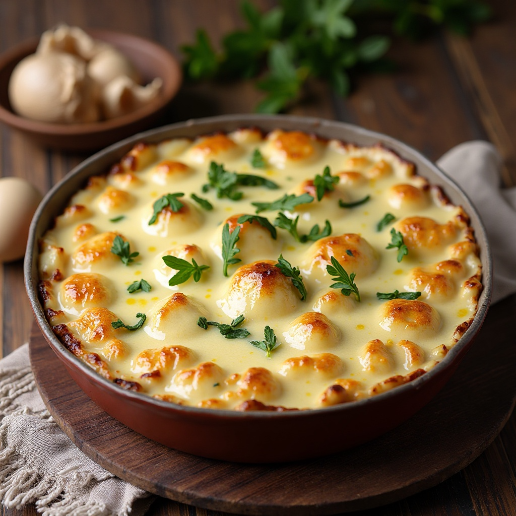 - Una vez que la mezcla esté espesa, vierte el contenido en un tavë (olla para hornear) o una olla grande. Hornea a 180°C (350°F) durante 30-40 minutos, o hasta que el queso esté bien cocido y la superficie esté ligeramente dorada.