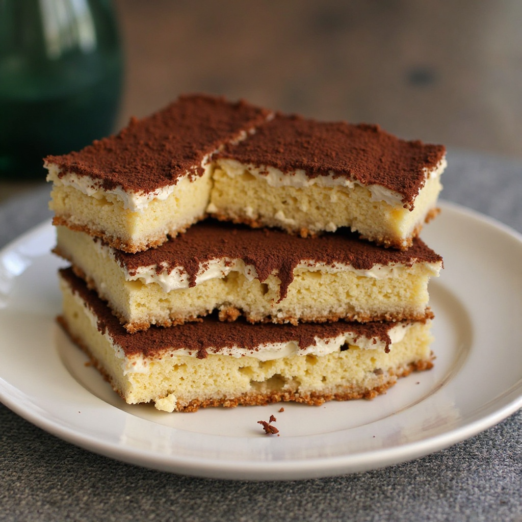 - Una vez listo el bizcocho, corta capas finas y colócalas en el fondo del molde. Luego, bate suavemente las claras en las mezclas de mascarpone y café, distribuyendo esta mezcla entre las capas de bizcocho, alternándolas para crear una apariencia mariposeada.