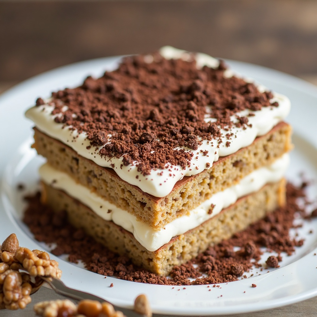 Este tiramisú es una indulgencia dulce que, en exceso, puede no ser saludable debido a su contenido de azúcar y alcohol. Sin embargo, al incorporar nueces negras, se añade un toque de fibra y antioxidantes. Para aquellos con restricciones alimenticias, se pueden sustituir el ron por un licor sin alcohol o evitarlo por completo.