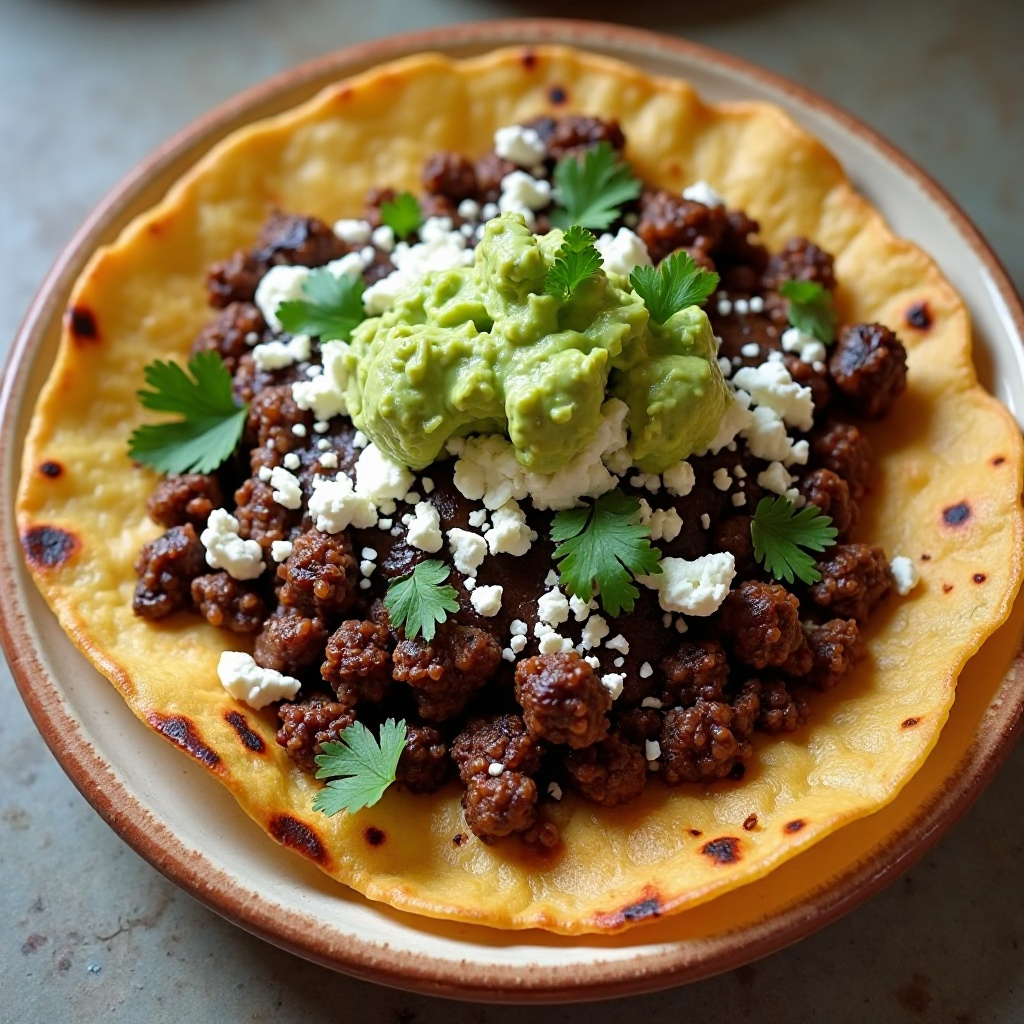 Esta receta ofrece una combinación equilibrada de proteínas, fibra y antioxidantes gracias a los ingredientes frescos. La carne molida proporciona proteínas esenciales, mientras que el mole negro, hecho con chiles y especias, aporta un perfil antioxidante y de sabor. El guacamole añade grasas saludables y vitaminas A y C. Asegúrate de usar carnes magras y controlar las porciones de queso para mantener una dieta balanceada.