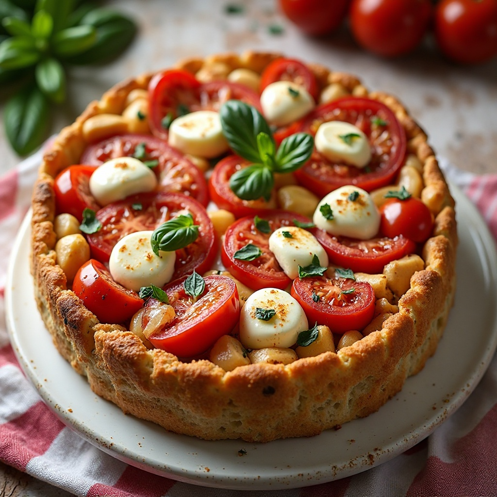 La Torta Caprese es un ejemplo perfecto de cómo los ingredientes locales pueden ser transformados en una deliciosa creación. En Foggia, donde el Pan di Altamura se cultiva tradicionalmente, esta torta refleja la riqueza culinaria de Apulia, conocida por su simplicidad y frescura. El uso de tomates secos y frescos celebra la diversidad de productos locales, mientras que el queso y la mozzarella aportan un equilibrio perfecto de sabores.