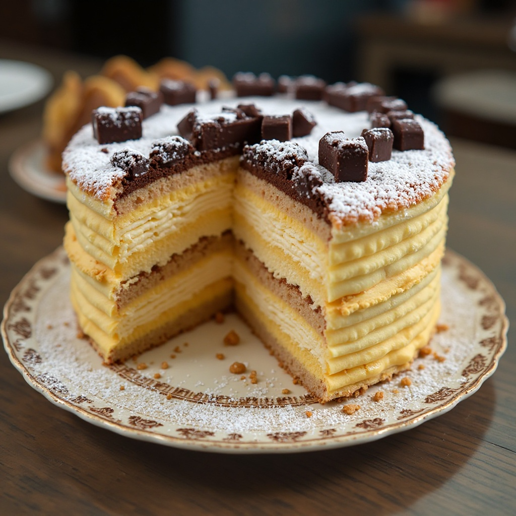 La Torta Dobos es un clásico pastel húngaro conocido por su deliciosa combinación de capas dulces y crujientes. Inspirado en la rica tradición culinaria de Pécs, una región con raíces turcas que influyen en muchos de sus platos, hemos creado esta versión «Torta Dobos Doble». Este pastel incluye un relleno cremoso similar al tradicional pero con un toque adicional de sabores locales para realzar su atractivo.