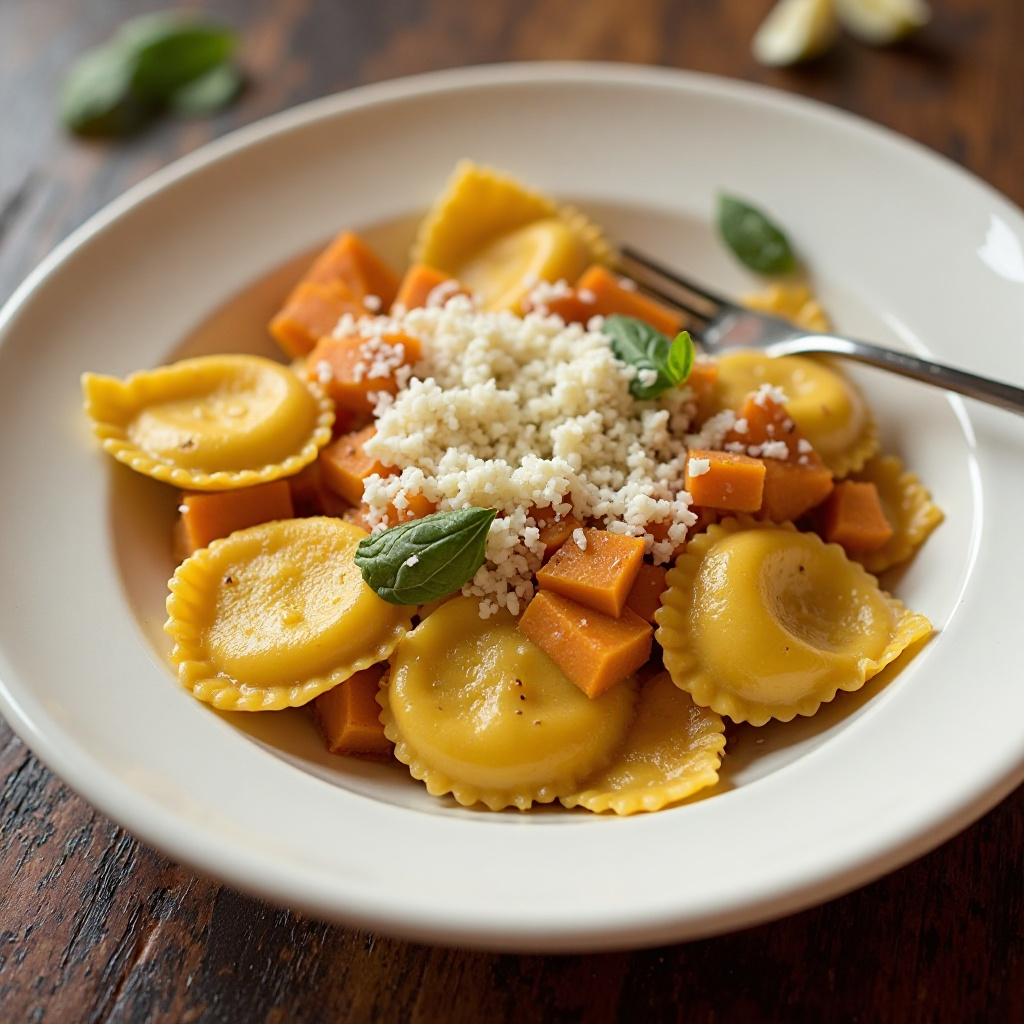 Receta de Tortelli di Zucca al Forno con Salsa de Queso Asiago