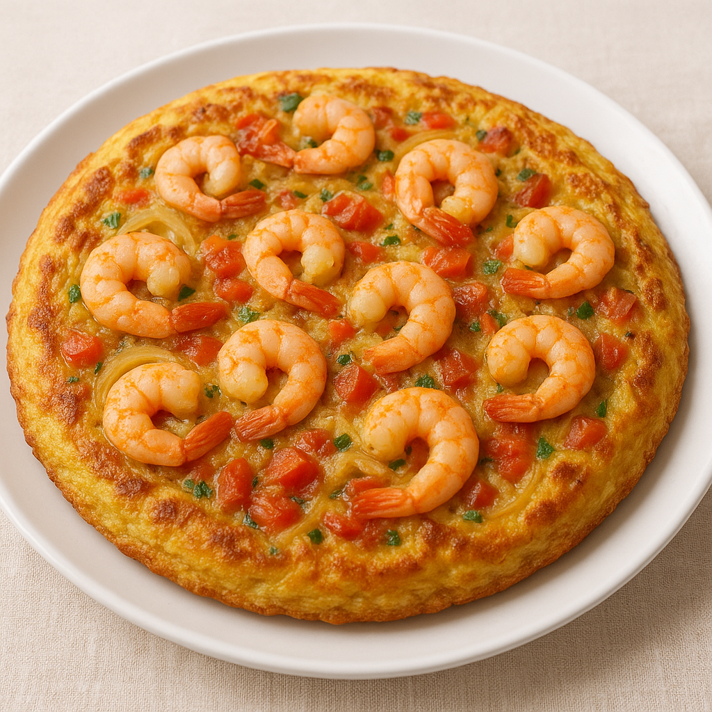 La tortilla de camarones es un plato típico de la región andaluza de Sevilla, España. Este delicioso platillo se inspira en la clásica tortilla española, pero añade camarones para darle un toque salado y una textura crujiente que lo distingue. Es perfecto como plato principal o como tapa en una noche de celebración.