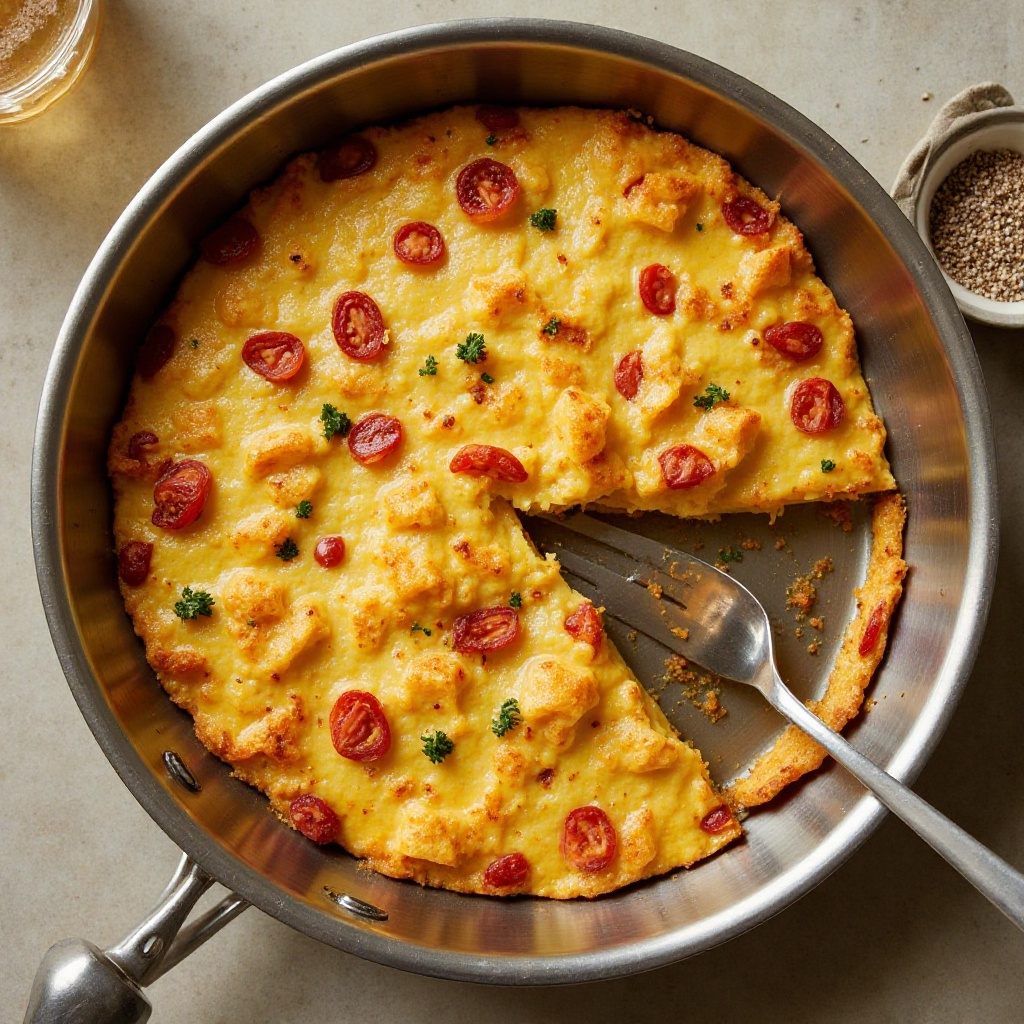 - Calienta una sartén antiadherente con un poco de aceite de oliva y vierte la mezcla de tortilla. Cocina a fuego medio hasta que la parte inferior esté dorada, aproximadamente 5 minutos.