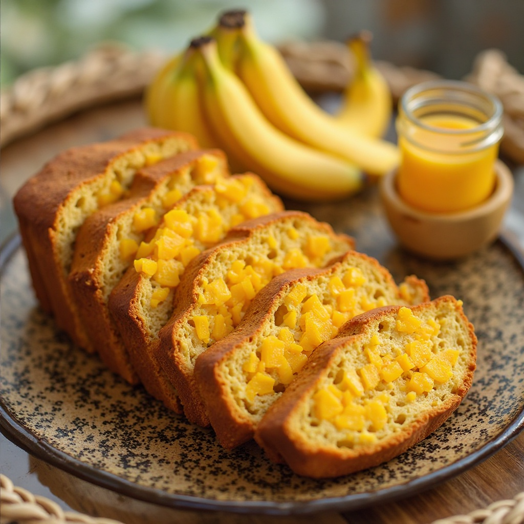 Este pan tropical es una fuente de vitaminas y minerales gracias a los ingredientes frescos de mango y plátano. La harina y el azúcar moreno proporcionan energía, mientras que la mantequilla añade un toque cremoso y saludable. Para una versión más ligera, se puede reducir la cantidad de mantequilla o utilizar mantequilla de cacahuete como alternativa.
