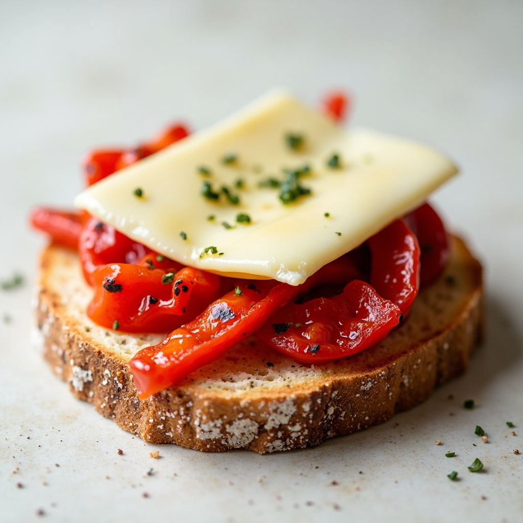Receta de Tosta de Queso Manchego y Pimientos Asados – Almansa, España