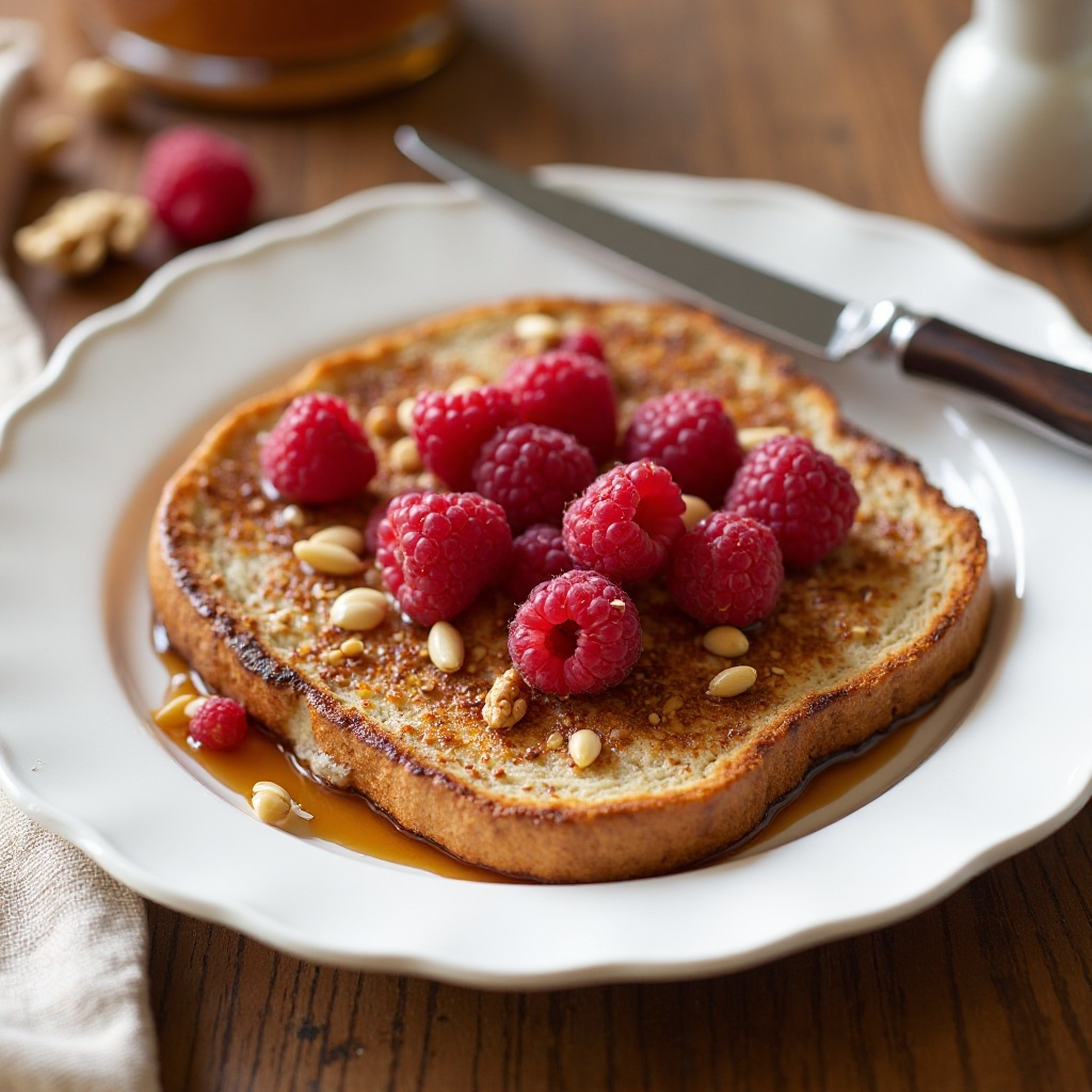 Este plato es una opción saludable, rica en antioxidantes y fibra, gracias a las frambuesas y el pan integral. El arce sin procesar ofrece azúcares naturales y propiedades antioxidantes. Para aquellos con restricciones alimenticias, el pan integral debe ser de tu elección y las frambuesas deben ser orgánicas si es posible.