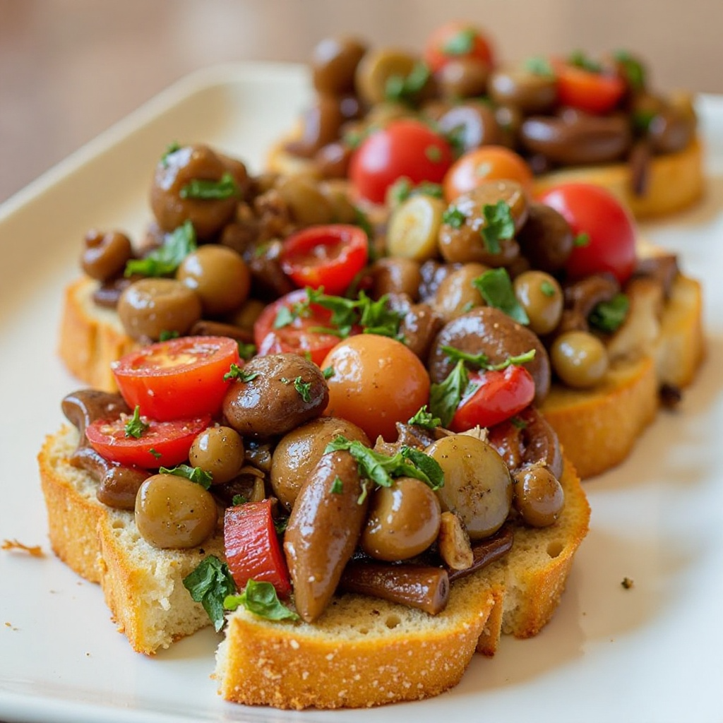 - Coloca una cucharada de la mezcla en cada tostada, espolvorea con queso parmesano (si se desea) y termina con unas hojas de albahaca fresca.