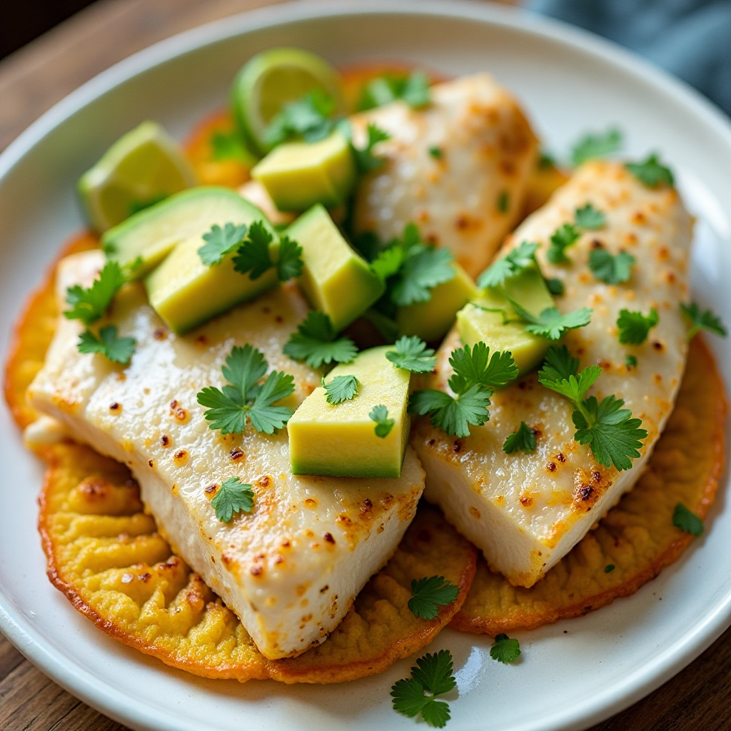 - Cubra los filetes de pescado con los cubos de aguacate y espolvorea con cilantro fresco, si lo deseas.