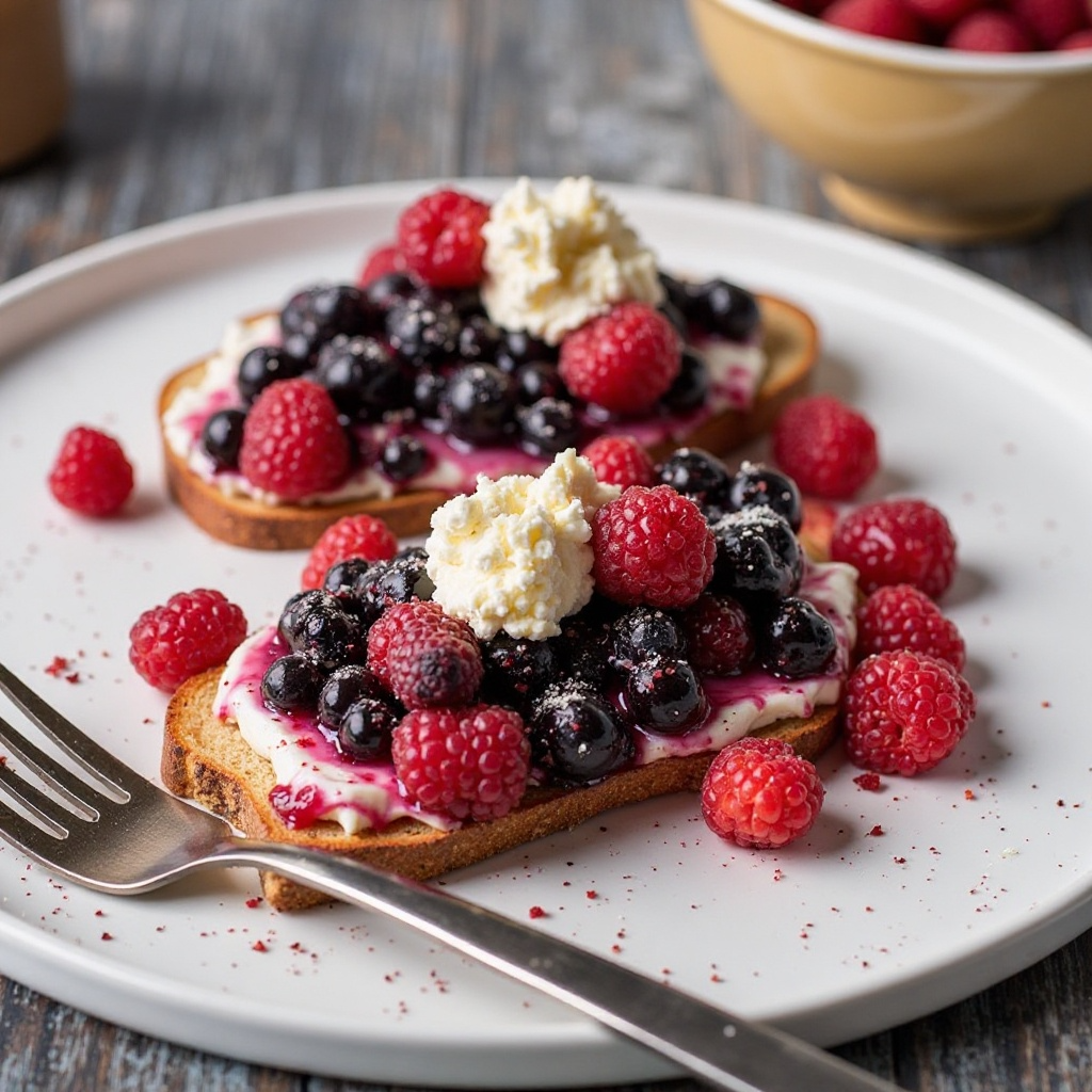 Receta de Tostado de Bayas Silvestres Canadienses y Queso Fresco con Mantequilla de Almendras
