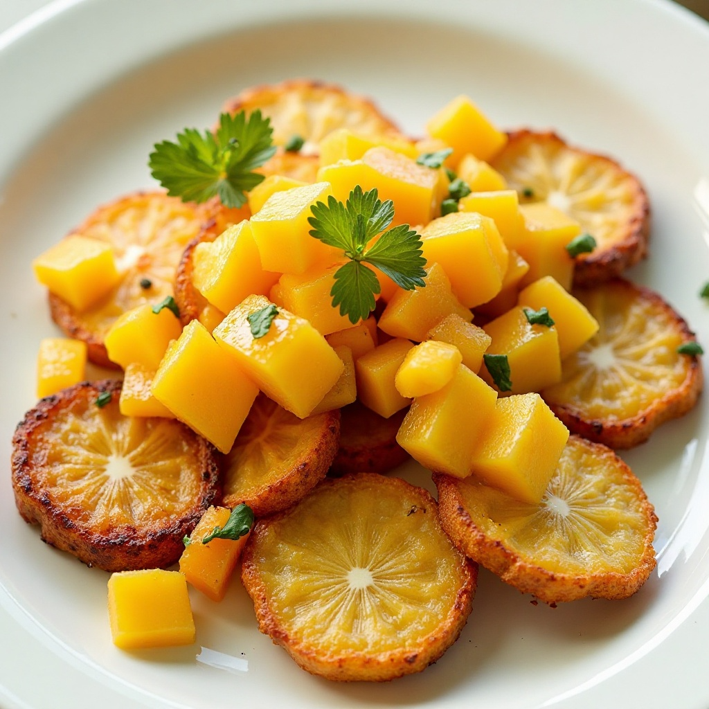 Receta de Tostones de Plátano Frito con Mango y Crema de Coco