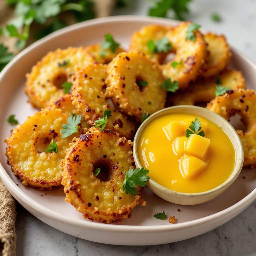 Laie, en el estado de Kauai en Hawái, es conocida por su ambiente tropical y sus abundantes frutas de temporada. Este plato combina las clásicas tostones de plátano maduro con una salsa de mango espesa y coco, que añade un toque fresco y exótico a la receta tradicional. Es perfecto para disfrutar del sabor auténtico de los frutos tropicales en cualquier parte del mundo.