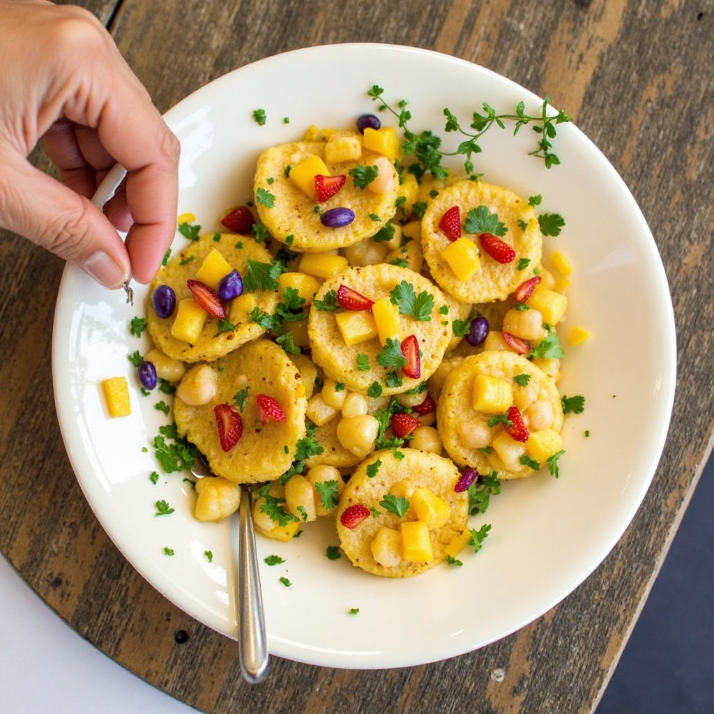 En Paía, el espíritu de celebración y comunidad se refleja en platos como estos, que fusionan ingredientes frescos y locales con tradiciones latinas. El uso de frutas tropicales no solo añade un sabor vibrante a la comida, sino que también destaca la rica diversidad cultural de la región baha’í. Este plato es perfecto para compartir en reuniones familiares o como tentempié durante el día, celebrando los sabores del sur y el frescor del norte.