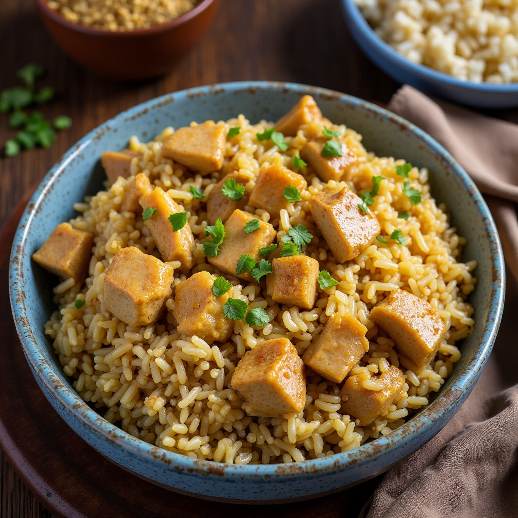 - Sirve caliente el Trashigang en platos individuales, asegurándote de que cada porción tenga una buena cantidad de carne y suja cubierta por el arroz cremoso.